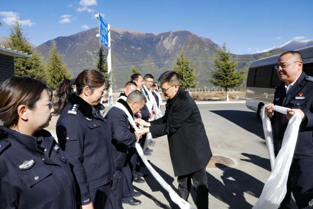 在第六个中国人民警察节到来之际,为进一步传递组织的深切关怀,激励广大公安民辅警忠诚履职、担当作为。1月7日,市委常委、政法委书记、市公安局党委书记崔能飞深入林芝边境管理支队、反恐特侦十支队、市看守所、车辆管理所等单位开展走访慰问,代表市委、市委政法委、市公安局党委向坚守在公安战线各个岗位的广大民辅警及家属致以节日的美好祝愿和诚挚问候。市公安局党委副书记、副局长张玉生,党委委员、政治部主任何成元陪同慰问。