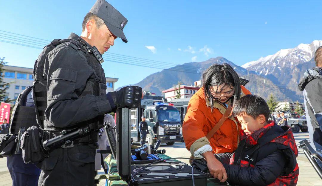 装备展示中,市公安局和反恐特侦十支队的各类警用枪械、防暴装备、应急救援设备、特种车辆等依次亮相,民辅警讲解员现场细致介绍装备性能与用途,动作规范利落,讲解专业详实,充分展现了新时代林芝公安队伍的专业化素养。整齐排列的装备、震撼人心的展示画面,让现场群众直观感受到公安队伍守护平安的坚实底气,全方位彰显了新时代人民警察的责任担当与过硬实力。