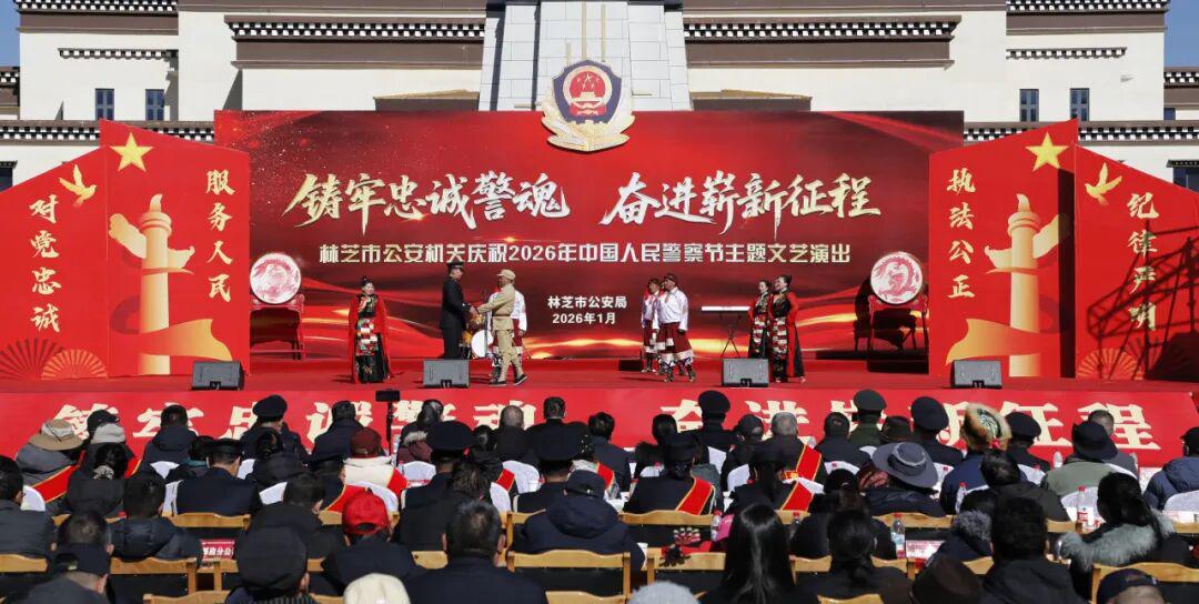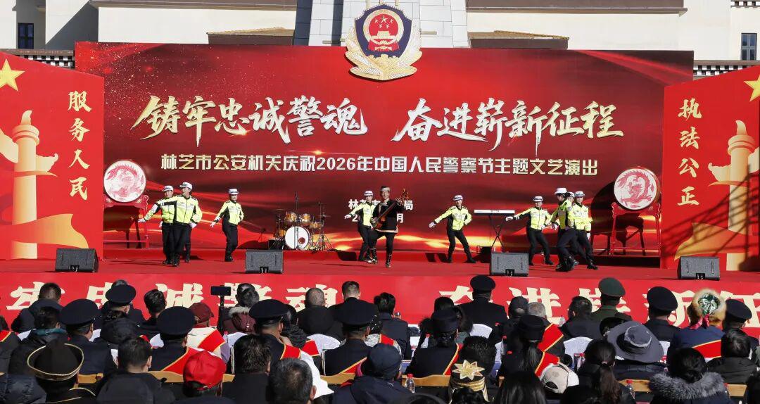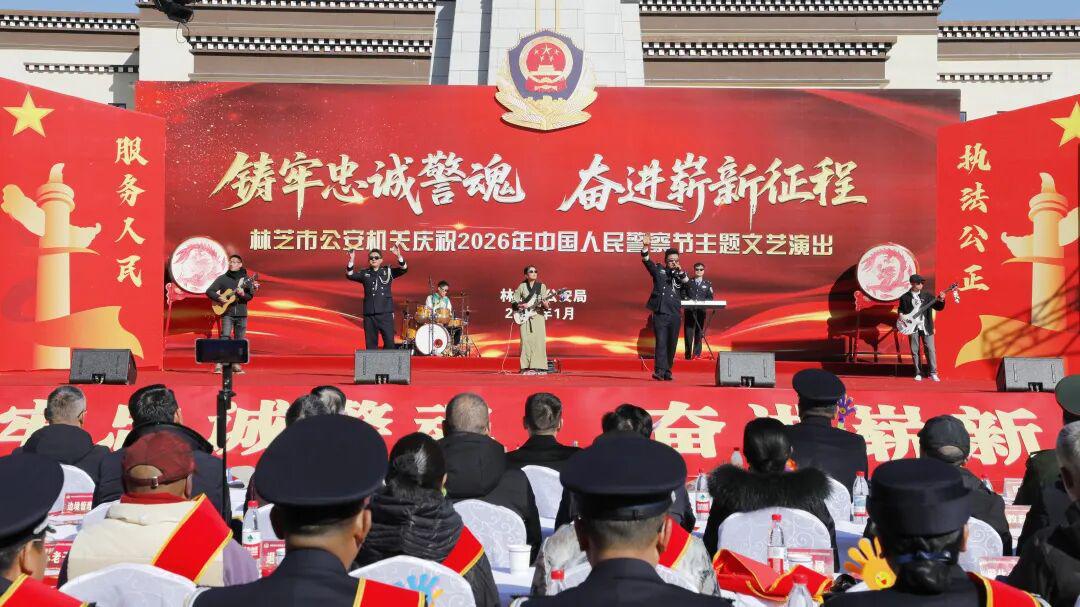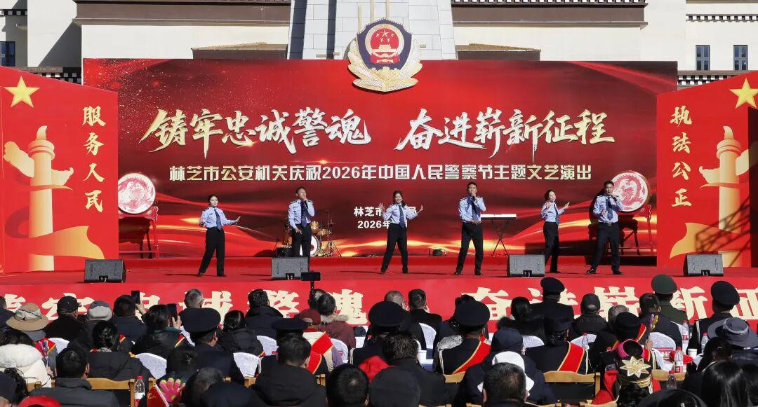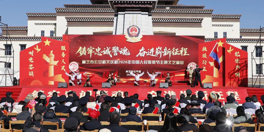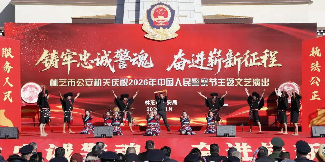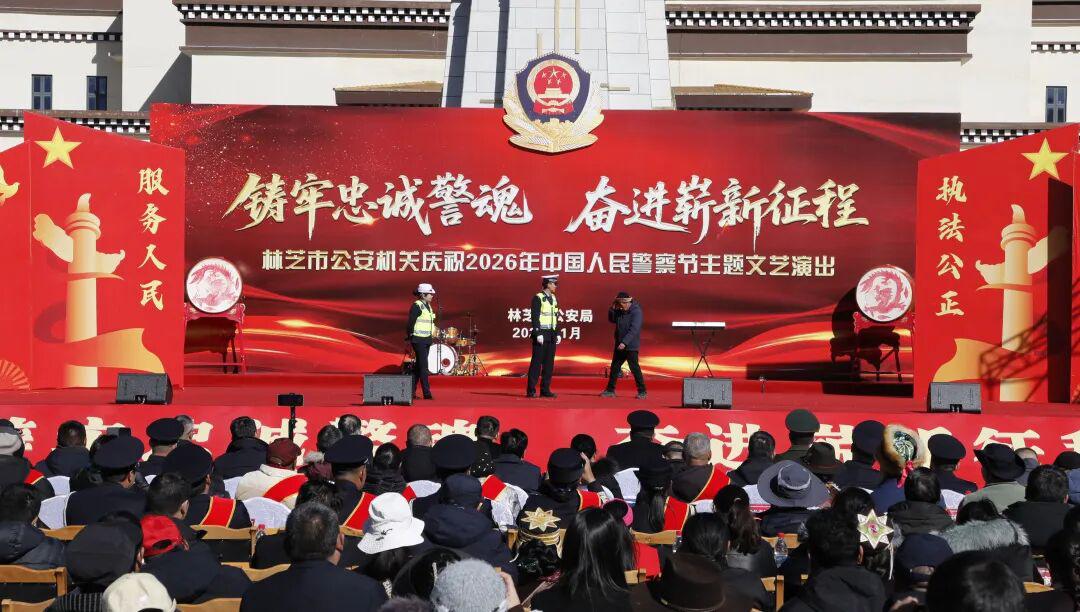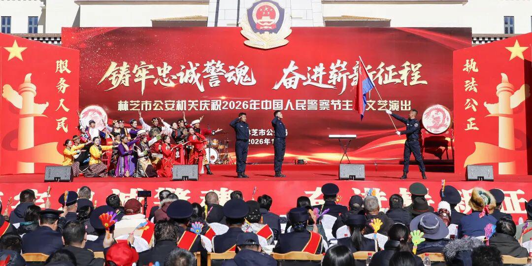 藏蓝抒壮志,欢歌敬忠诚。11时,全市公安机关精心筹备的庆祝2026年中国人民警察节“铸牢忠诚警魂·奋进崭新征程”主题文艺演出在工布公园响箭广场拉开帷幕。市委常委、市委政法委书记、市公安局党委书记崔能飞出席并致辞。市人大常委会党组成员、副主任王东升,市政府副市长、市委政法委副书记、市公安局党委副书记、局长、督察长次仁顿珠,市政协党组成员、副主席杜元文观看演出。