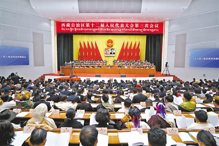 自治区十二届人大三次会议开幕会现场。西藏日报记者 旦增西旦 摄